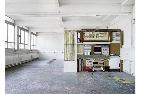Ausgangspunkt dieser Arbeit sind Ateliers von KünstlerInnen. Alles was sich im Raum befindet, das heißt Kunstwerke, Materialien und Möbel werden zu einem Quader verdichtet. Wenn am Ende alles zu dieser Form von Skulptur gestapelt wurde, ist der gesamte Arbeitsraum bis auf den Quader leer, es zeigt sich eine völlig veränderte Raumsituation. Weiterhin korrespondieren die Gegenstände auf einer abstrakten, ihrer Funktion entzogenen Ebene miteinander, und bilden Angriffsflächen für Projektionen und Imaginationen. Als Resultat aus diesem Prozess entsteht jeweils eine frontale Fotoaufnahme. Es zeigt sich ein Bezug von Kunstwerk und Arbeitsbedingungen.