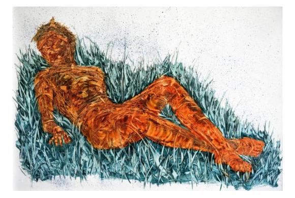 Earthen Dreams is a profound exploration of the human connection to nature and the grounding force it exerts on our psyche. The reclining figure, enveloped in rich, earthy tones, embodies a return to the primordial state—a retreat into the subconscious where the boundaries between self and nature dissolve. This artwork suggests a meditative surrender, where the figure becomes one with the earth, embodying a sense of peace and inner harmony that can only be found when we reconnect with our most elemental origins. Psychologically, the piece speaks to the universal desire for rest and rejuvenation, as well as the subconscious pull towards simplicity and authenticity in an increasingly complex world. It invites the viewer to consider the ways in which we seek solace in the natural world, using it as a sanctuary for healing and self-reflection amidst the chaos of daily life.