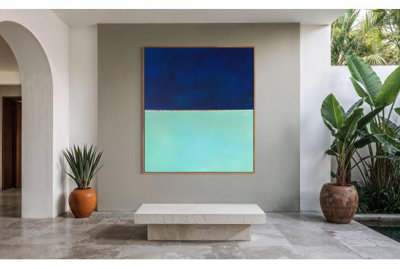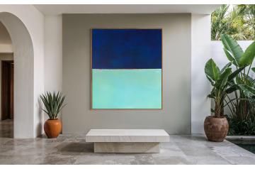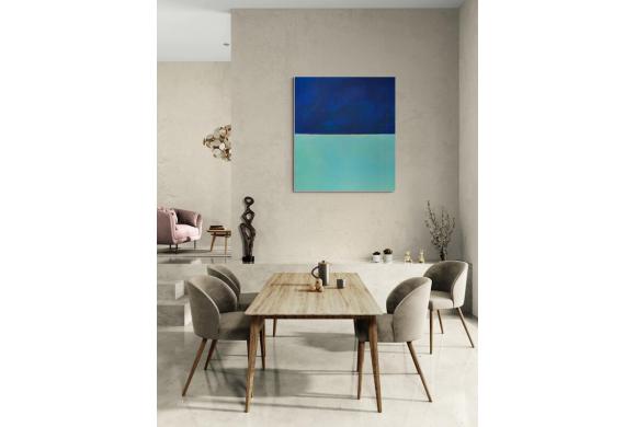 Anders als bei den dynamischen Bewegungsbildern geht es mir bei meinen Farbflächen um das Kreieren von Dichte und das Vermitteln von Weite. Sie ergeben sich durch das Erkunden von Farbkombinationen und das wiederholte Übermalen von Farbschichten – bis zu 10 Überfärbungen und mehr. Manchmal ist die erste Schicht ein Bewegungsbild, das durch Übermalungen zu einer ruhigen Farbfläche wird. Wie ein unverstellter Blick in die Ferne.