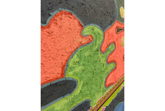 Für sie ist dies eine Arbeit der Seele. Durch einen Prozess der Hybridiät näht und formt sie zusammen, was auseinandergerissen wurde: Schwarzes Gedächtnis, Land, Identität und Spiritualität. Oft fragt sie sich: Was erinnern wir? Warum müssen wir heilen? Indem sie anerkennt, dass diese Fragen keine einfachen Antworten haben, hinterfragt ihre künstlerische Praxis ständig diese Fragen in einem endlosen Ritual des Suchens und Experimentierens als ein Weg, Ganzheit zu erlangen. Ihre Werke sind niemals nur ihre eigenen.