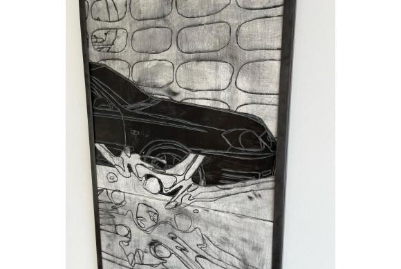 Material: Dokumentationsbasierte Lasergravur und Lack auf Metal (+ Stahlrahmen)