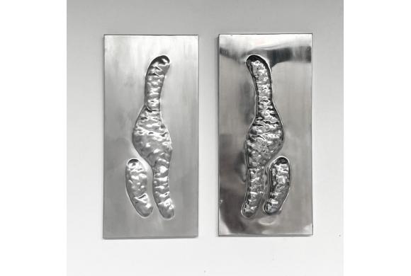 Zwei gespiegelte Objekte, gebürstet und poliert, aluminium getrieben