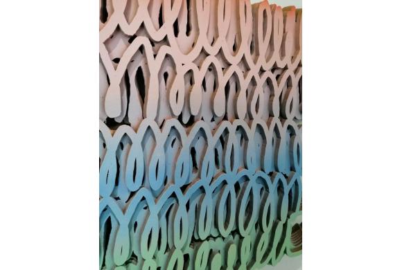 Val Wecerka geht in ihren Serie, “(Un)geschriebene Briefe” der Frage nach der Definition und Existenz eines Zuhauses nach. Ausgehend von Briefen und Zeitungen, in die sie Objekte entwickelte, um sie nach Wien zu transportieren, kreiert sie erste Werke. In diesen arbeitet sie mit Buchstaben und collagiert Zeitungen. Später transformieren sich Buchstaben in abstrakte Formen und werden unleserlich.