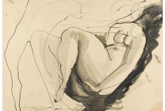 Ernst Fuchs (1930-2015) Damenakt, 1947 Tuschezeichnung auf Velin 57cm x 71,8cm gerahmt, signiert, datiert