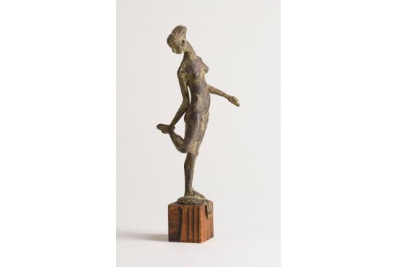 Bronze dunkelbraun/braun patiniert, auf Holzsockel