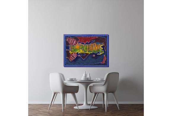 Pigmentierter Elefanten-Dung und Acryl auf Leinwand,